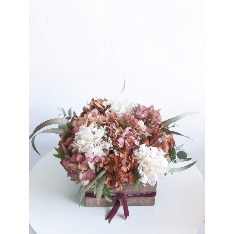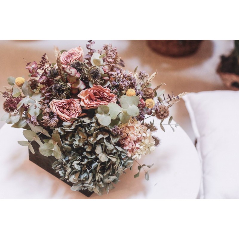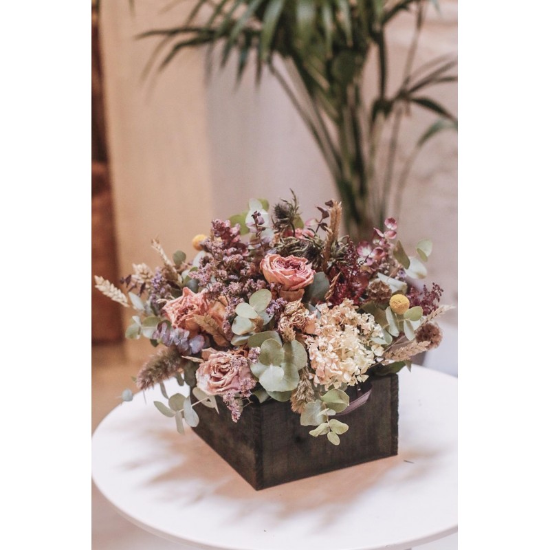 Si quieres que tus flores duren más o eres amante de las flores secas y preservadas, ésta es tu caja. Confeccionada con verdes naturales y variedades de flores naturales que secan de maravilla y combinado con flores secas y preservadas, para asegurar que tu caja se mantendrá igual de espectacular durante mucho tiempo. Sólo debes cuidar que no se acumule el polvo en las hojas y las flores y verás como se mantiene perfecto. Envío Madrid y península.