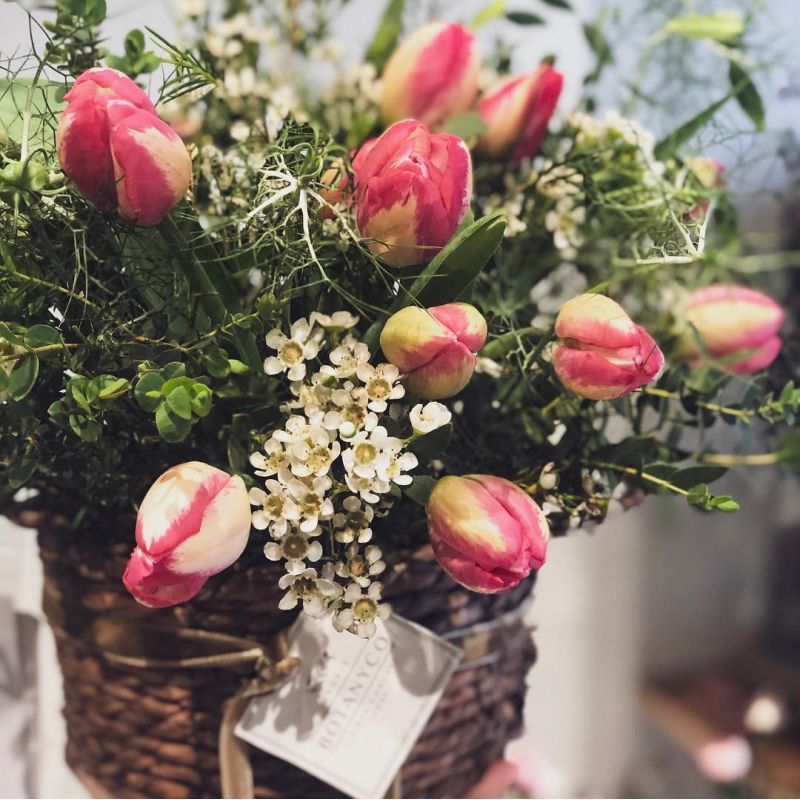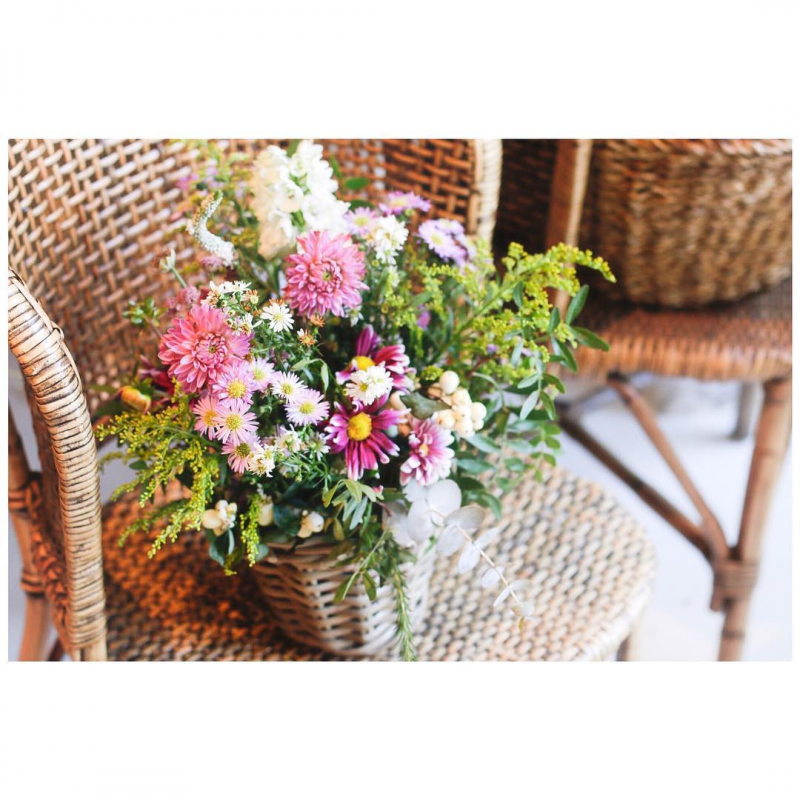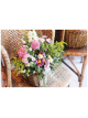 Cesta o capazo de fibras naturales de tamaño pequeño, rellena con flores de temporada y presentado con una elegante cinta. Incluye el texto para la tarjeta personalizada incluida, al finalizar tu compra.