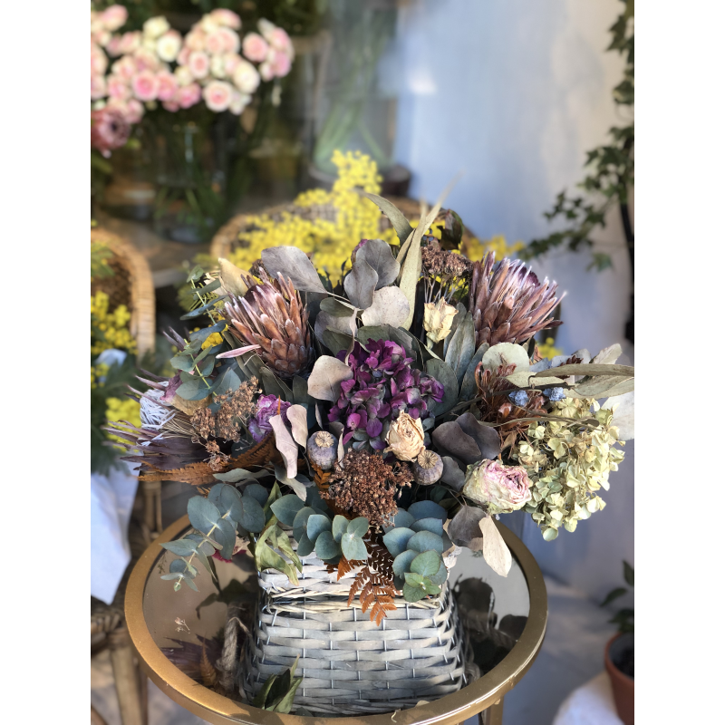 Disponemos de una gran variedad de cestas, de diferentes medidas y formas, para poder adaptarlos a todo tipo de presentaciones y arreglos. Escogeremos la cesta que mejor quede con tu elección.