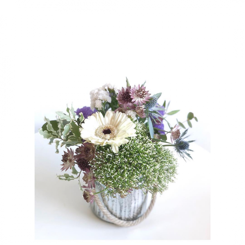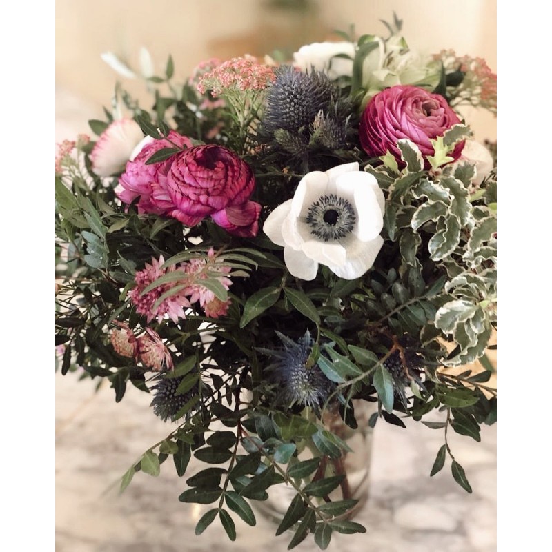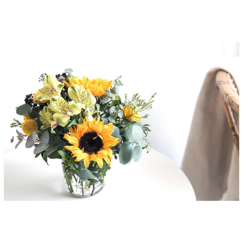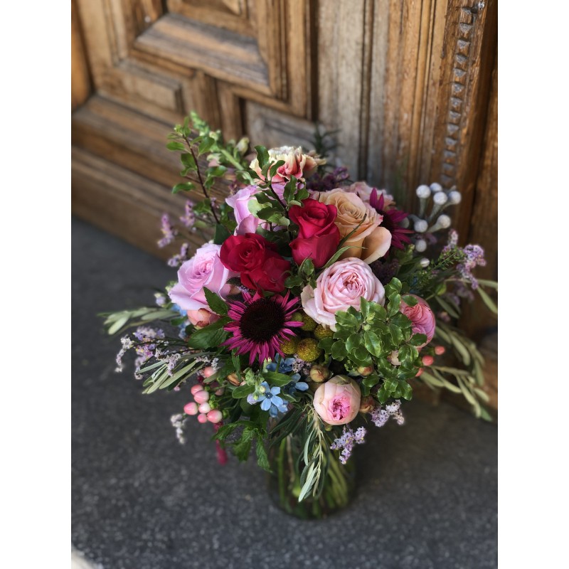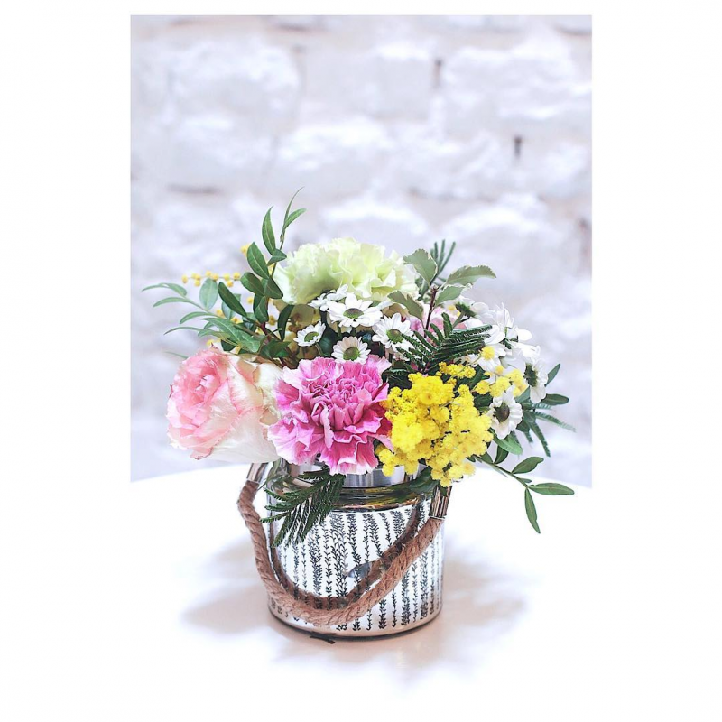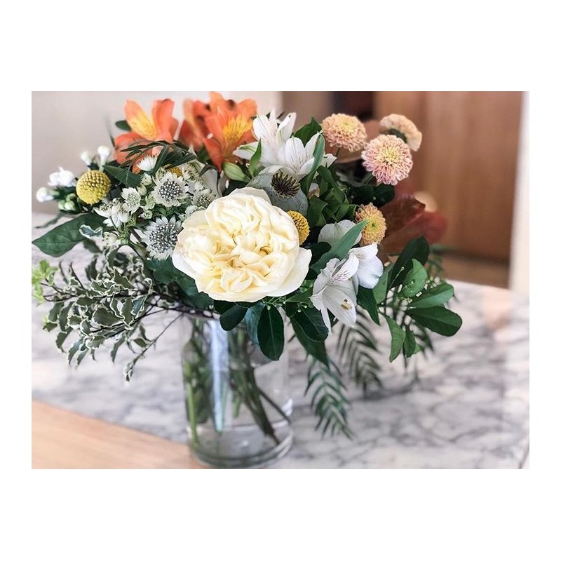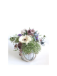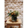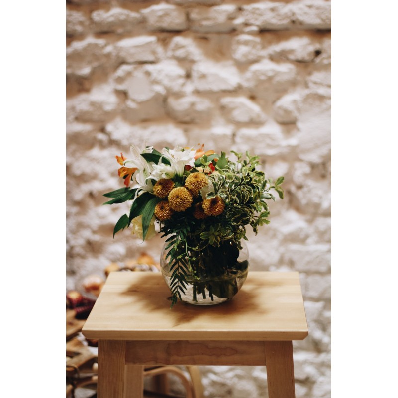 Jarrón de cristal de tamaño pequeño, ideal como detalle, relleno de flores de temporada y verdes naturales. La elegancia del cristal sumado a la belleza de las flores que en él lucirán, hacen de esta presentación un regalo perfecto para quien quiere tener un detalle inolvidable y de buen gusto. Incluye el texto para la tarjeta personalizada incluida, al finalizar tu compra.