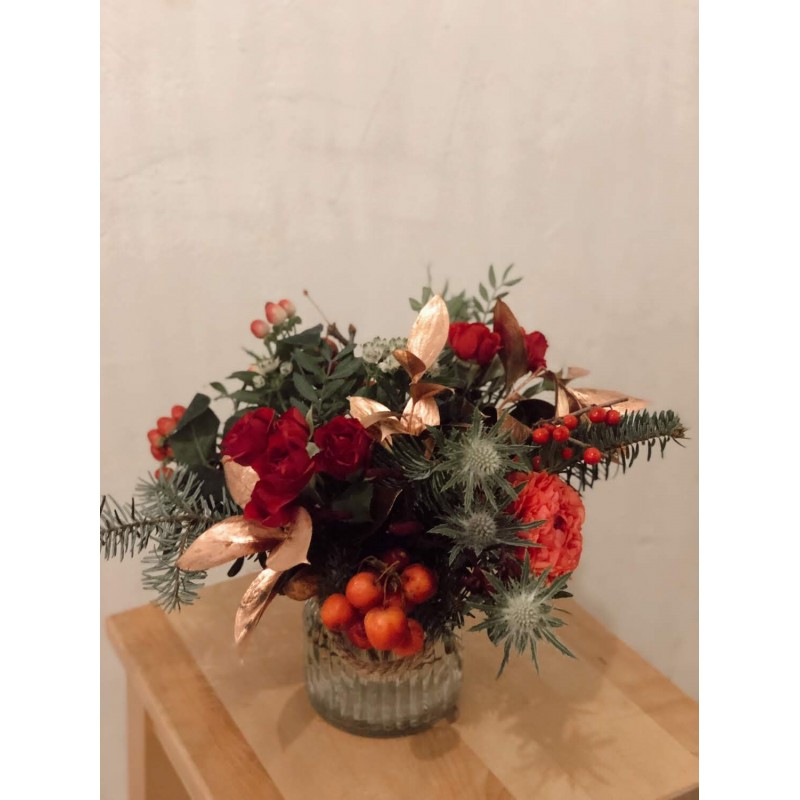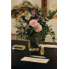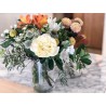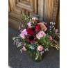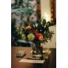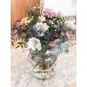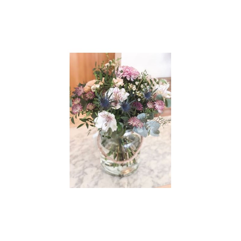 Jarrón de cristal de tamaño pequeño, ideal como detalle, relleno de flores de temporada y verdes naturales. La elegancia del cristal sumado a la belleza de las flores que en él lucirán, hacen de esta presentación un regalo perfecto para quien quiere tener un detalle inolvidable y de buen gusto. Incluye el texto para la tarjeta personalizada incluida, al finalizar tu compra. Envío sólo Madrid.