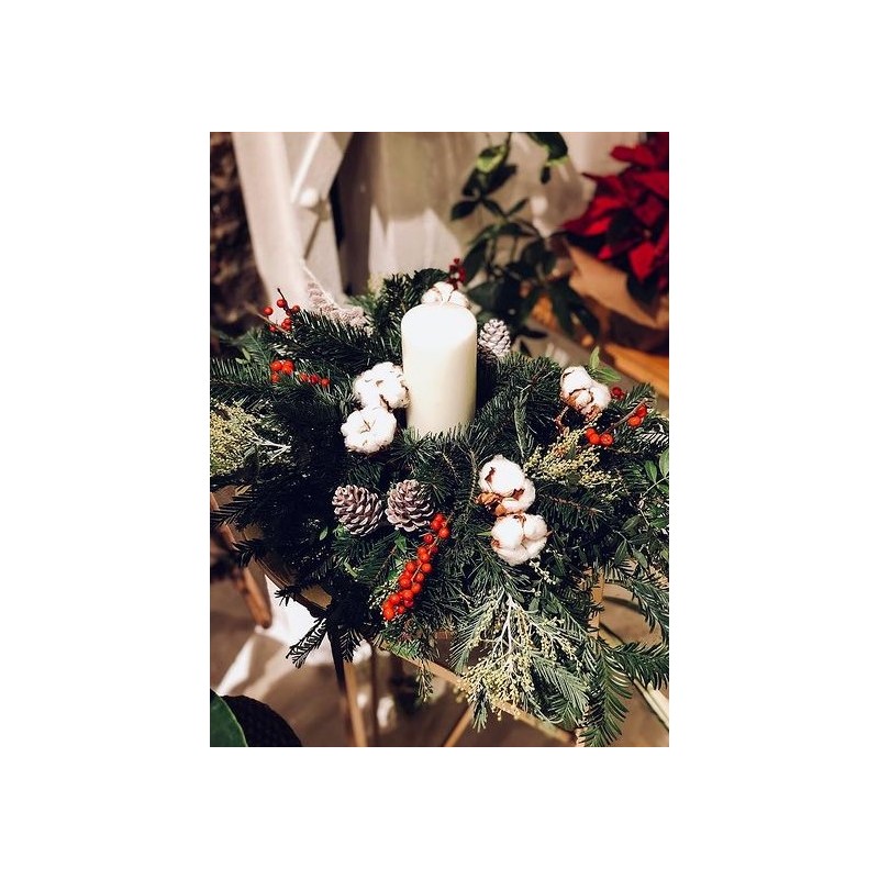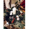 Centro de mesa con velón de cera de abeja natural, confeccionado con verdes Navideños, frutos y adornos naturales típicos de la Navidad. Escoge entre tonos naturales, toques dorados o plateados. Nuestros centros de mesa tienen un tamaño aproximado de 35-40cm, ideal para cualquier espacio. Se presenta con nuestra etiqueta de Navidad Botanyco y si lo quieres para regalo, con un tarjetón personalizado con tu mensaje.