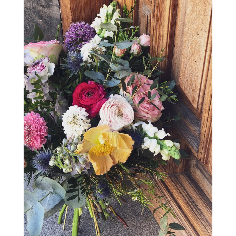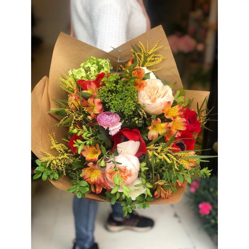 Ramos voluminosos y llamativos, confeccionados con flores de temporada. Escoge la tonalidad de las flores que más vaya con tu estilo. Los ramos se presentan en papel estraza y rafia natural y puedes personalizarlos con un mensaje en una de nuestras tarjetas que incluiremos en el ramo, al finalizar tu compra. El tamaño del ramo siempre será orientativo, pudiendo variar según la selección de flor y el volumen de los verdes de cada temporada. Envío sólo Madrid.