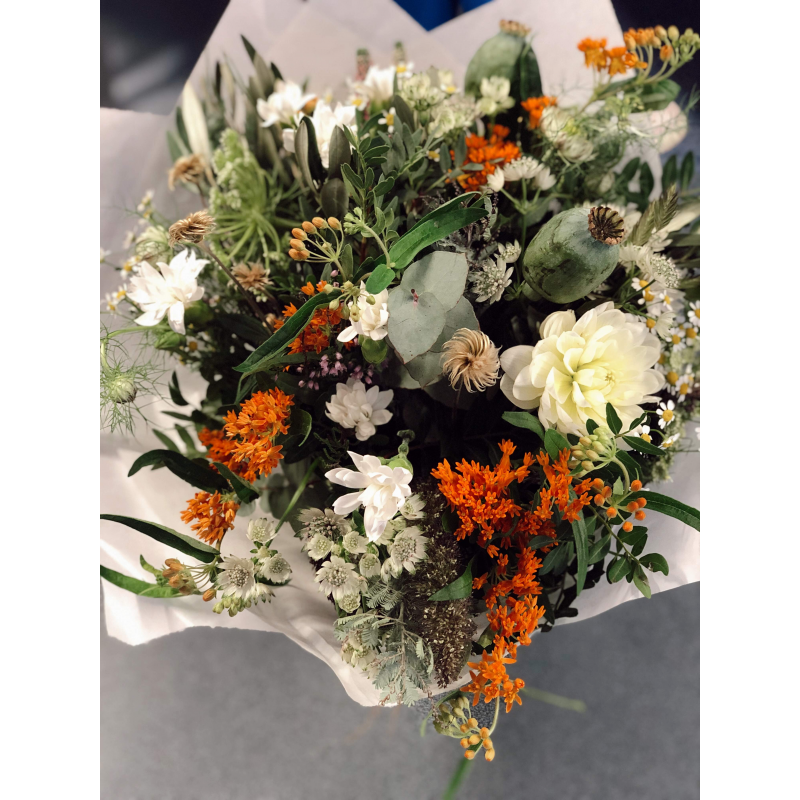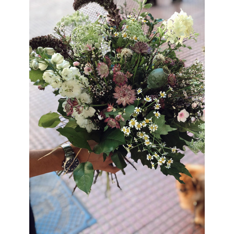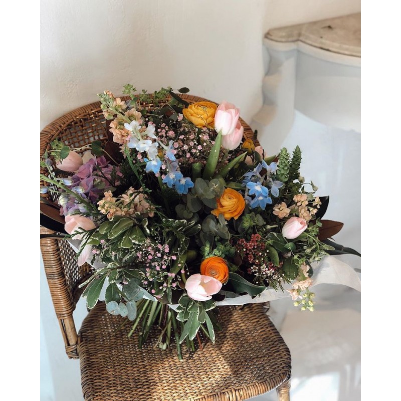 Ramos voluminosos y llamativos, confeccionados con flores de temporada. Escoge la tonalidad de las flores que más vaya con tu estilo. Los ramos se presentan en papel estraza y rafia natural y puedes personalizarlos con un mensaje en una de nuestras tarjetas que incluiremos en el ramo. El tamaño del ramo siempre será orientativo, pudiendo variar según la selección de flor y el volumen de los verdes de cada temporada.
