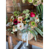 La selección de flores se hará con la flor de temporada disponible en nuestro taller, escogiendo la combinación de colores más bonita, según la tonalidad que has seleccionado. El tamaño del ramo siempre será orientativo, pudiendo variar según la selección de flor y el volumen de los verdes de cada temporada.