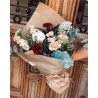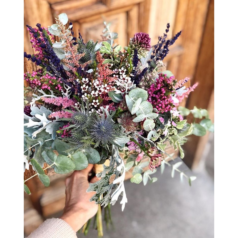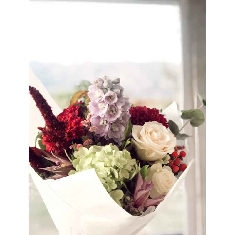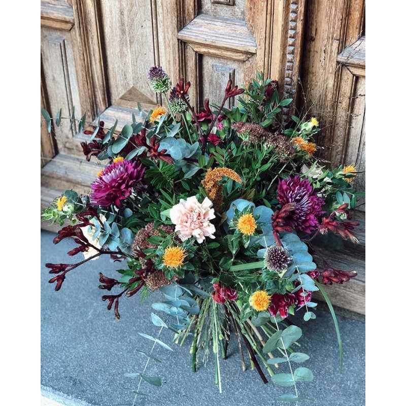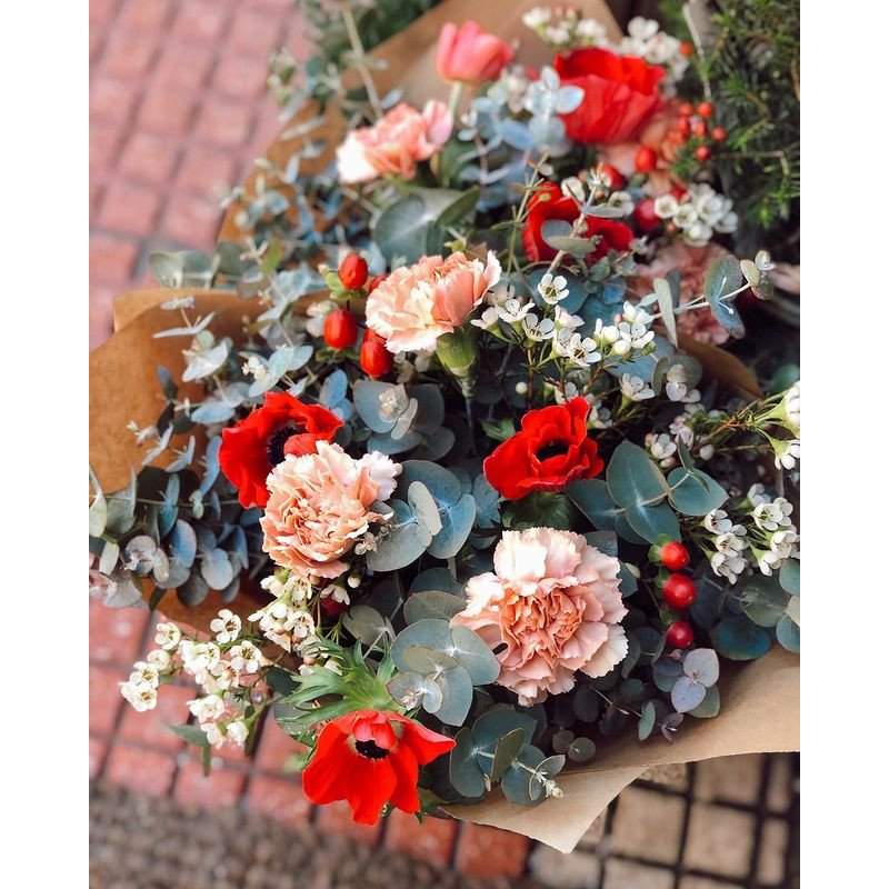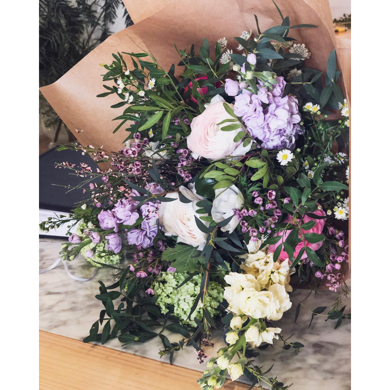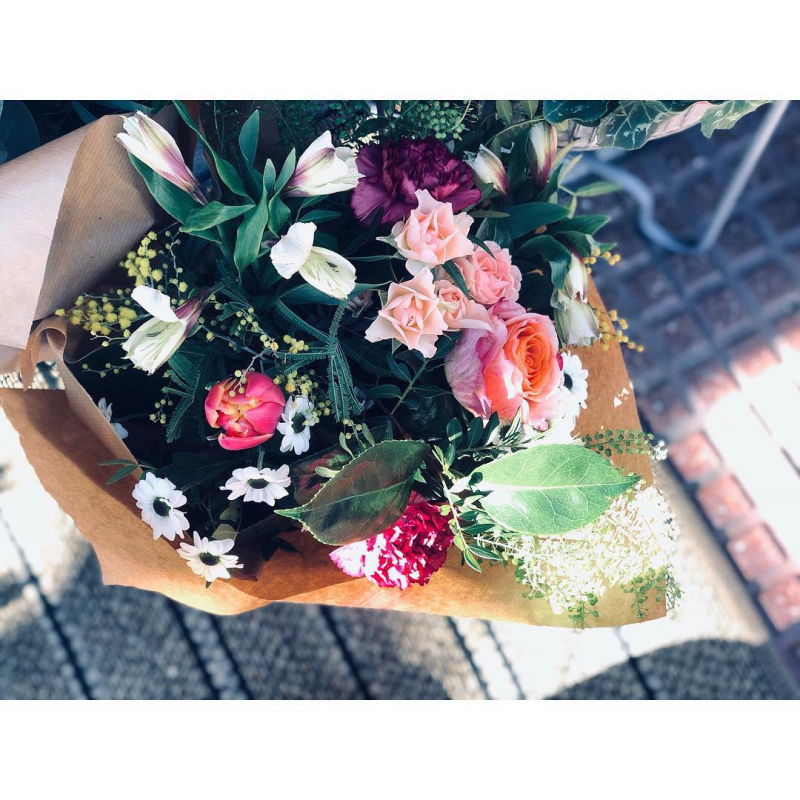Ramos sencillos y vistosos de flor de temporada. Escoge la tonalidad de las flores que más vaya con tu estilo. Los ramos se presentan en papel estraza y rafia natural y puedes personalizarlos con un mensaje en una de nuestras tarjetas que incluiremos en el ramo.
