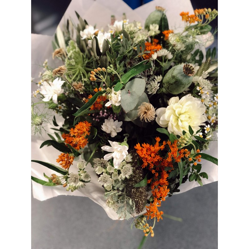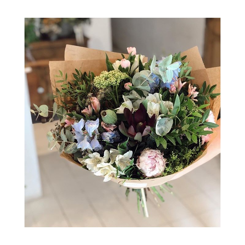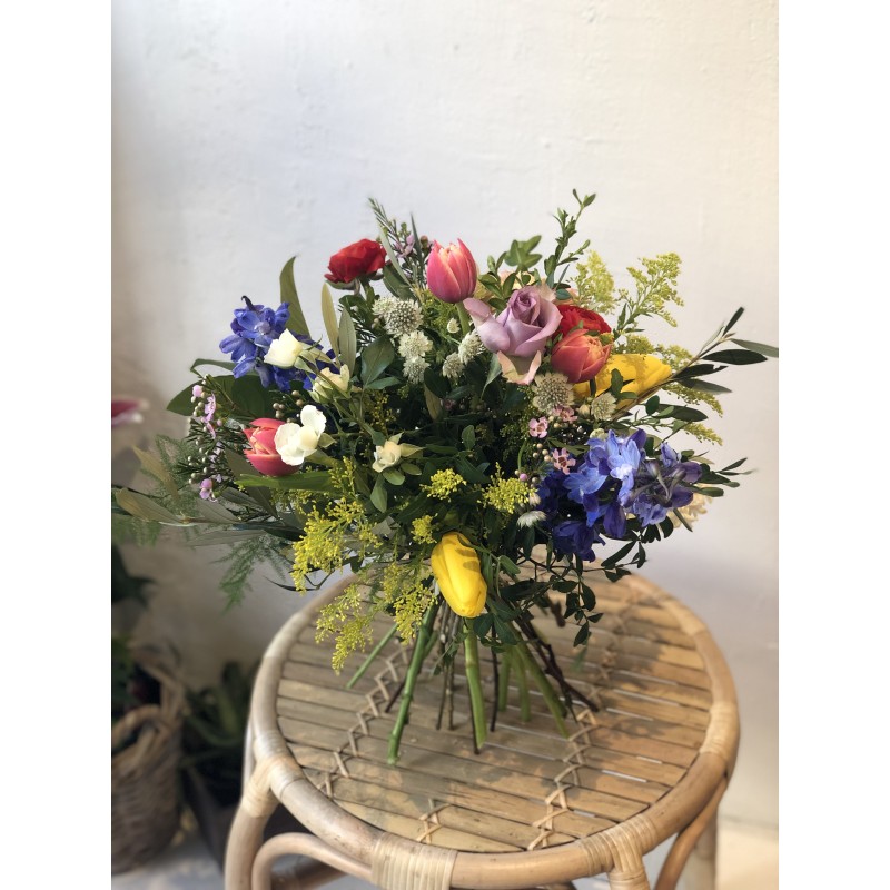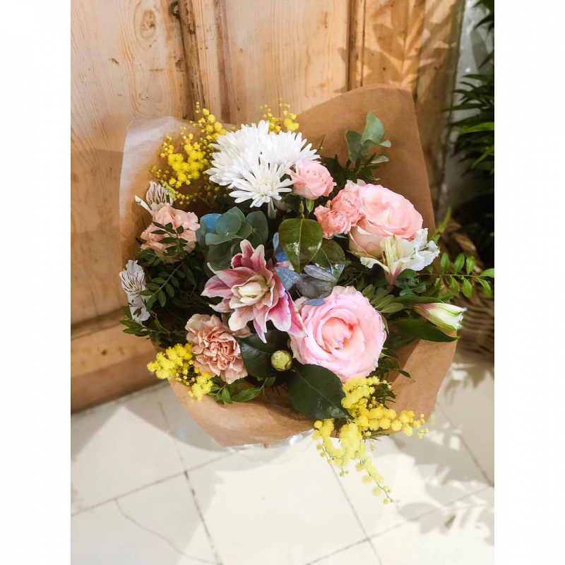 Ramos sencillos y vistosos de flor de temporada. Escoge la tonalidad de las flores que más vaya con tu estilo. Los ramos se presentan en papel estraza y rafia natural y puedes personalizarlos con un mensaje en una de nuestras tarjetas que incluiremos en el ramo al finalizar tu compra. El tamaño del ramo siempre será orientativo, pudiendo variar según la selección de flor y el volumen de los verdes de cada temporada.