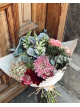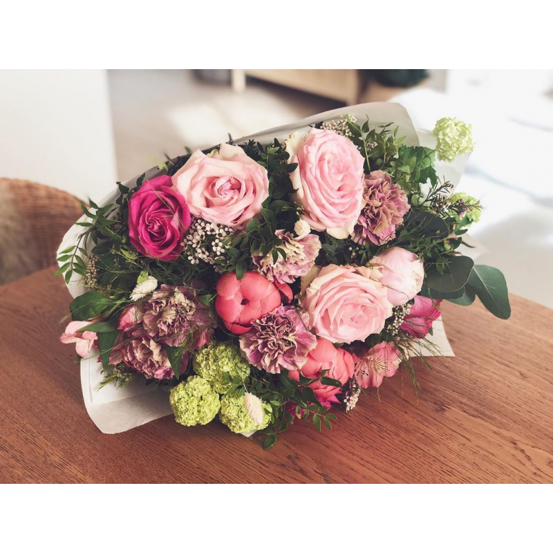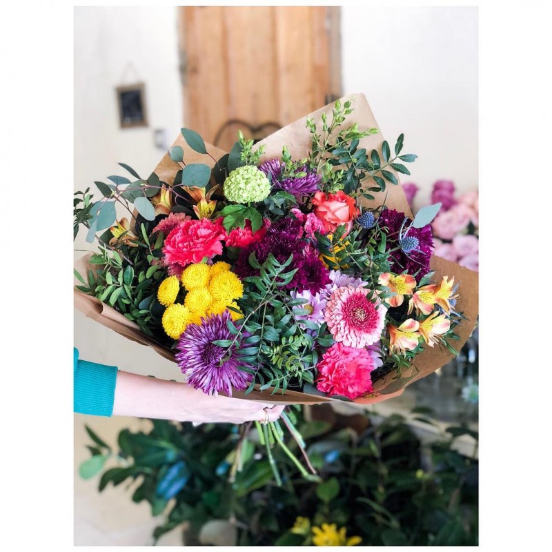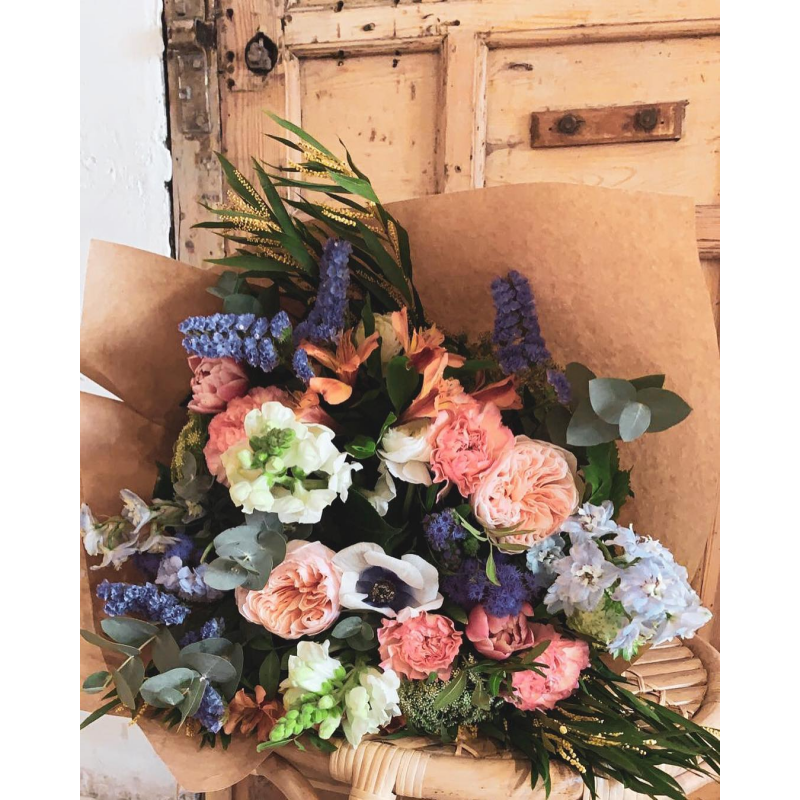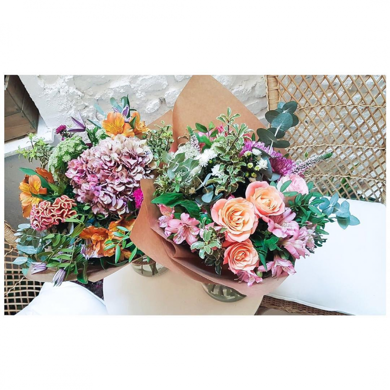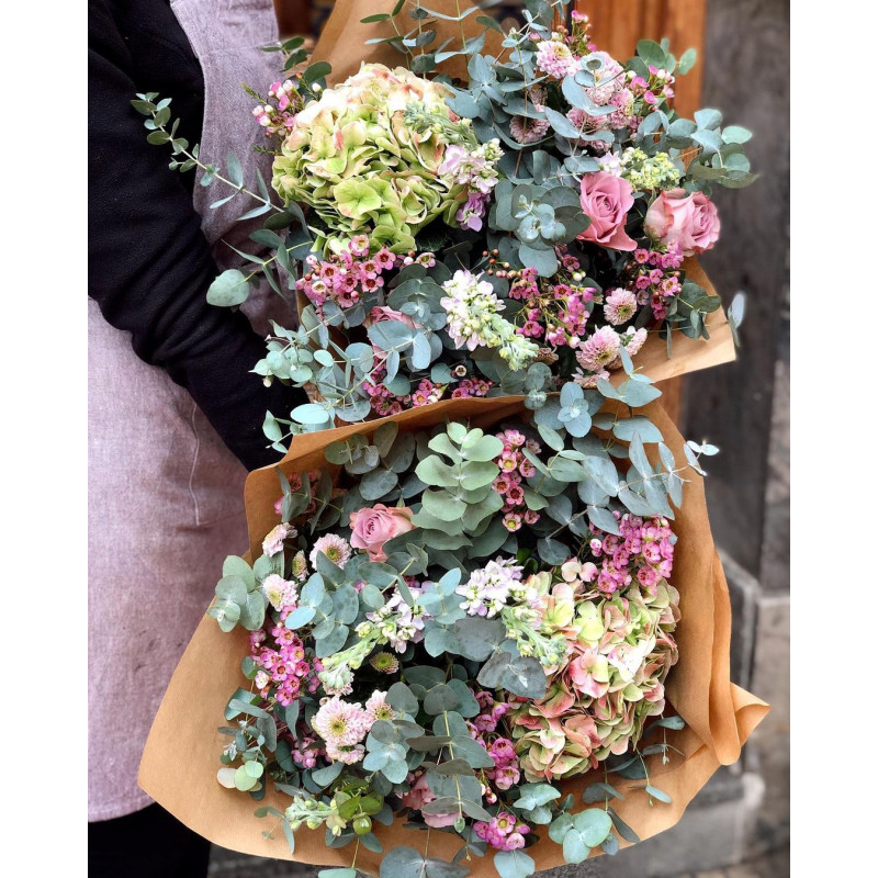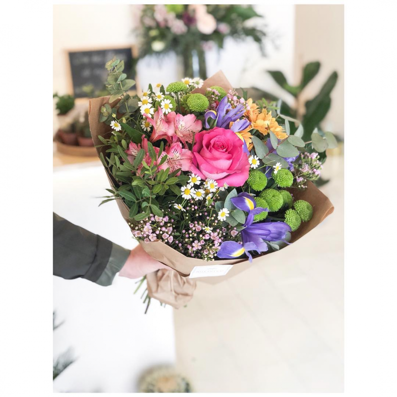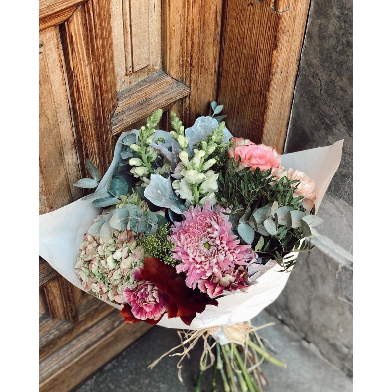 Preciosos ramos de un volumen medio, confeccionados con flores de temporada. Escoge la tonalidad de las flores que más vaya con tu estilo. Los ramos se presentan en papel estraza y rafia natural y puedes personalizarlos con un mensaje en una de nuestras tarjetas que incluiremos en el ramo, al finalizar tu compra.