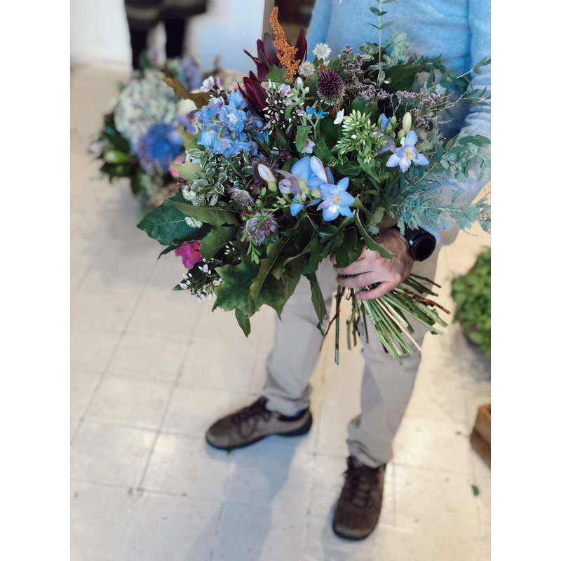 Preciosos ramos de un volumen medio, confeccionados con flores de temporada. Escoge la tonalidad de las flores que más vaya con tu estilo. Los ramos se presentan en papel estraza y rafia natural y puedes personalizarlos con un mensaje en una de nuestras tarjetas que incluiremos en el ramo. El tamaño del ramo siempre será orientativo, pudiendo variar según la selección de flor y el volumen de los verdes de cada temporada.